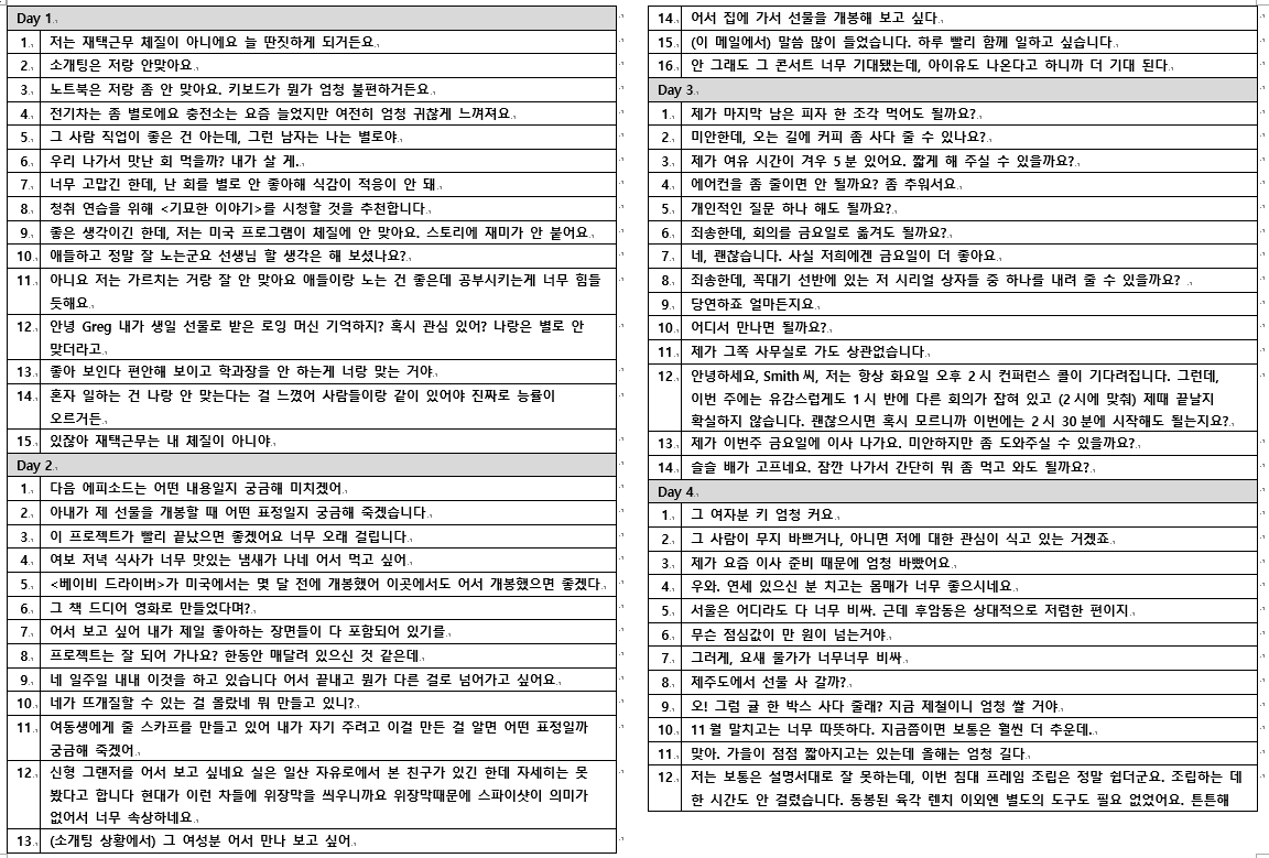위 첨부된 문서가 장표가 많아서 간략히 3장에 정리 하였습니다. 간략히 한글 문장 보면서 바로 입으로 말하는 연습 하려고 정리했습니다. 필요하신 분은 댓글 주세요.