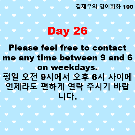 평일 오전 9시에서 오후 6시 사이에 언제라도 편하게 연락 주시기 바랍니다.