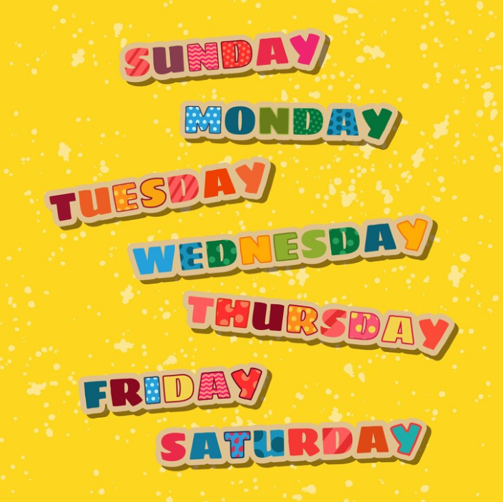 월요일, 화요일, 수요일, 목요일, 금요일, 토요일, 일요일 어떻게 표현할까요? 기본적으로 모든 요일은 첫 번째 알파벳은 대문자를 사용해야 합니다.